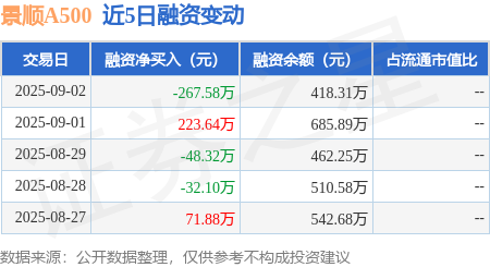 本站消息,9月2日,景顺A500(159353)融资买入43.39万元,融资偿还310.97万元,融资净卖出267.58万元,融资余额418.31万元。